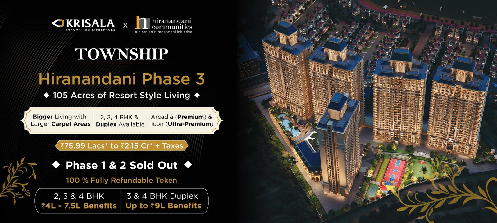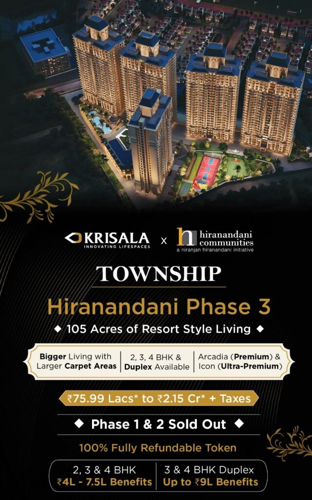 Phase 3 is the most evolved and strategically planned phase of the 105-acre Hiranandani Township, offering better planning, modern infrastructure, and clearly differentiated lifestyles through Arcadia (Premium) and Icon (Ultra-Premium).